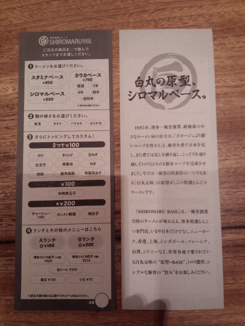 「一風堂」の別形態「SHIROMARU-BASE」に行ってきました。