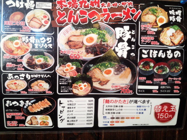 メニューを見るとバリエーション豊富。「大牟田」やら「中洲」といった「九州」ワードが並びますが名前だけでは正直なかなかピンときませんね。