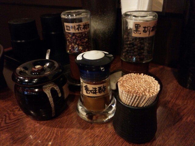 店内には独特な香りがしますが、正体は中華料理でよくある八角などの香り。中華料理出身のご主人なんでしょうか、卓上を見ても「四川花椒」などが置いてありました。