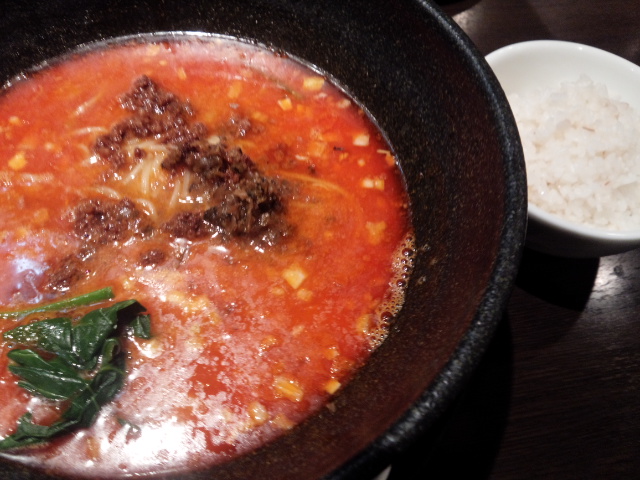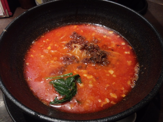 一般的な担々麺との比較でいえば、ゴマのコクがかなり濃厚に感じられるスープにラー油をたっぷり加えたちょっと辛めの担々麺という位置づけでしょうか。