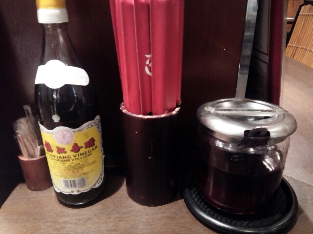 また、卓上には「お酢」と「ラー油」が置いてあるので、
